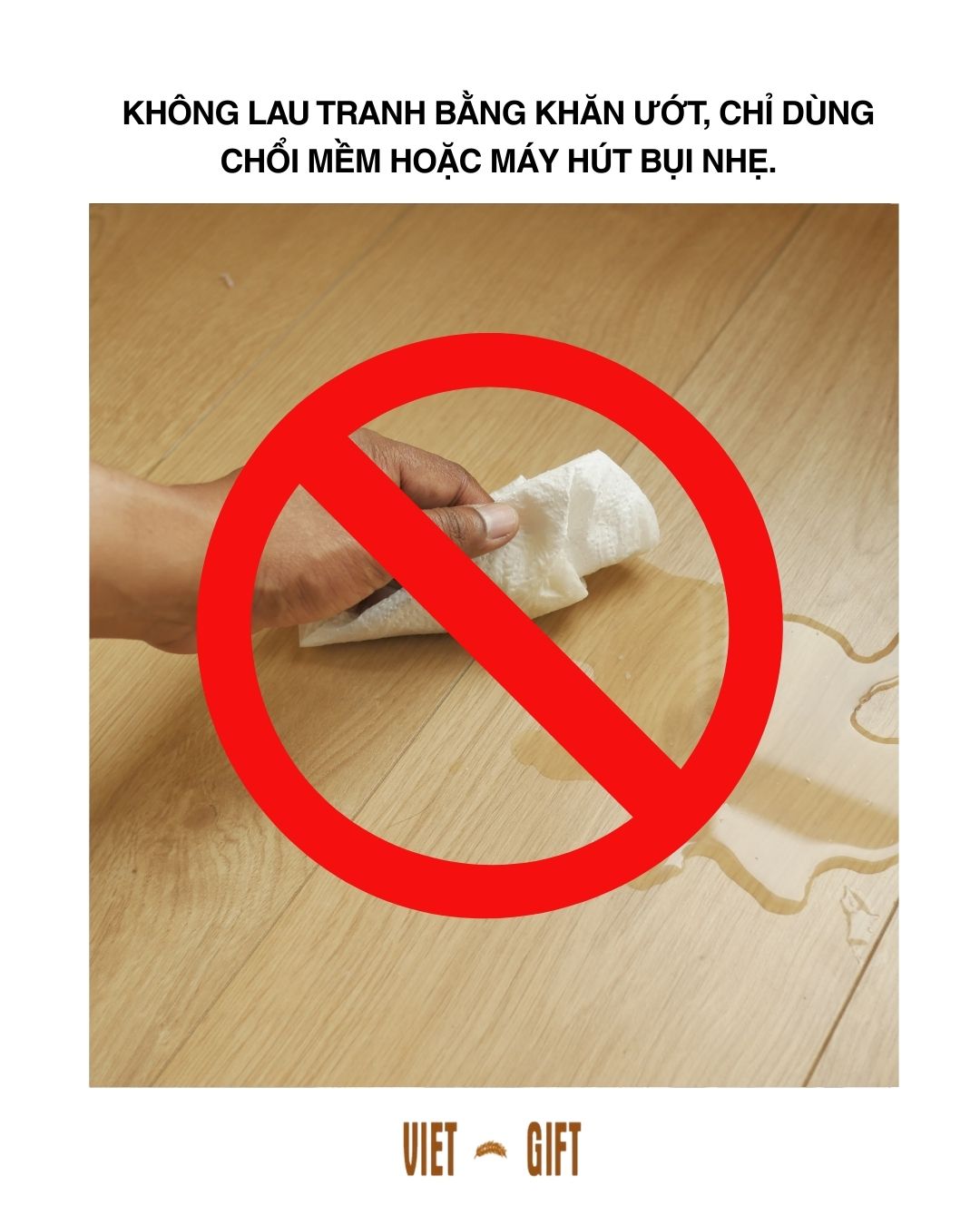 🔹 Không lau tranh bằng khăn ướt, chỉ dùng chổi mềm hoặc máy hút bụi nhẹ.