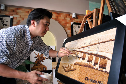 Độc đáo tranh nghệ thuật làm từ hạt gạo