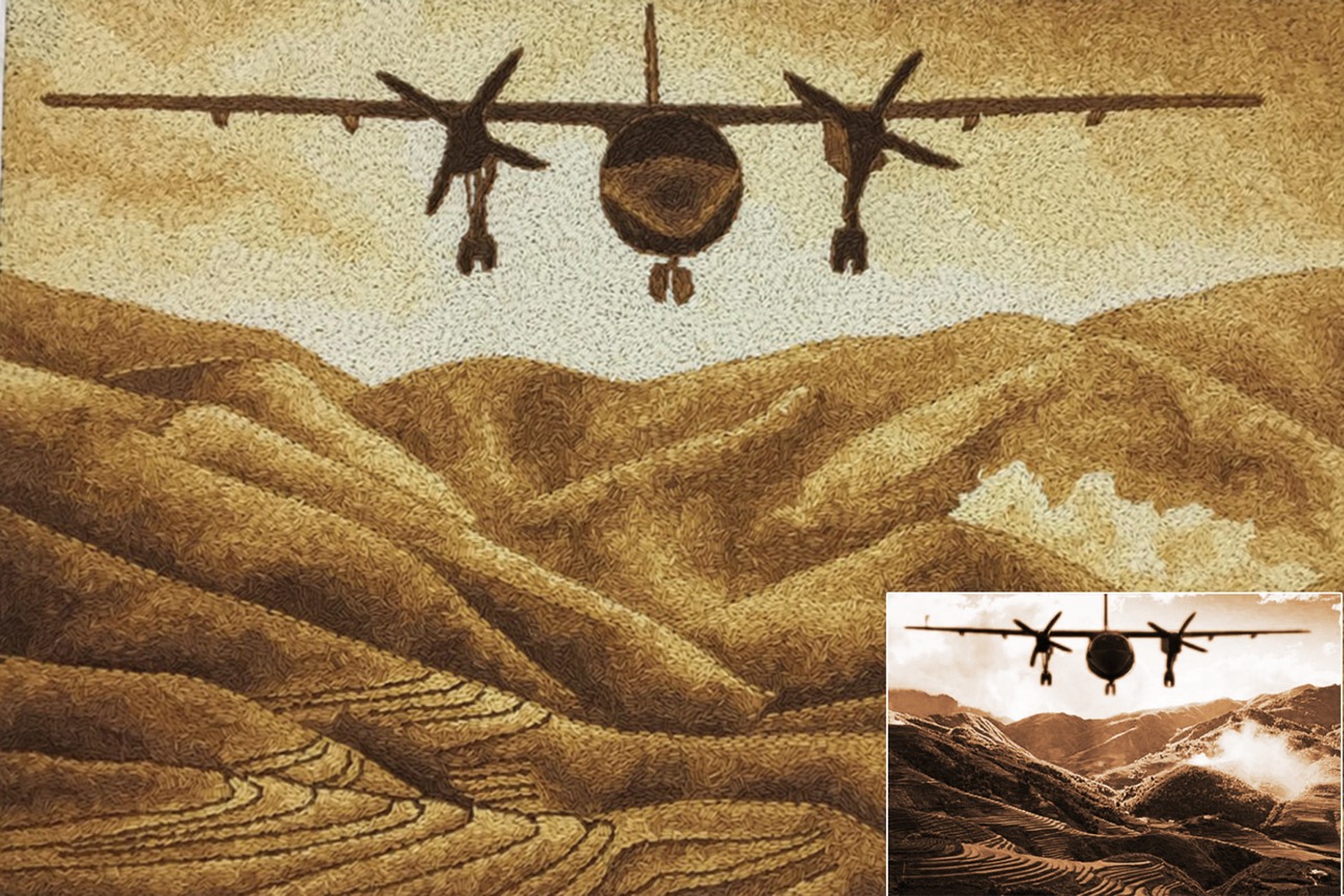 Tranh Gạo Phong Cảnh Máy Bay Và Núi